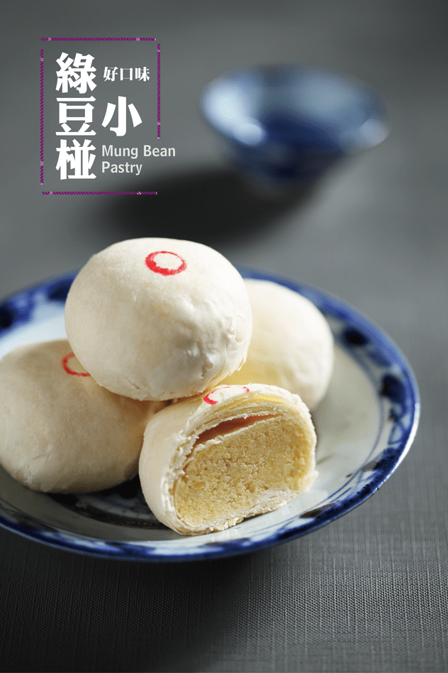 傳統的古早味小綠豆椪,綿蜜細柔的豆沙餡,迎合現代人的口味,內餡不會太甜,傳統與現代結合一顆顆雪白的綠豆椪