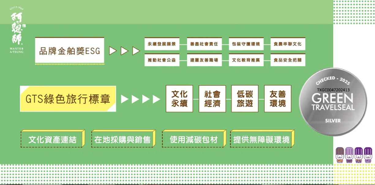 - 民國114年-阿聰師芋頭文化館榮獲台中市旅遊局GTS觀光永續綠色旅遊標章二星銀級殊榮