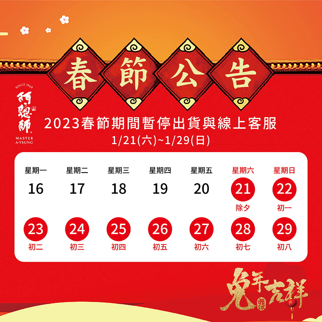 2023春節暫停出貨及線上客服公告